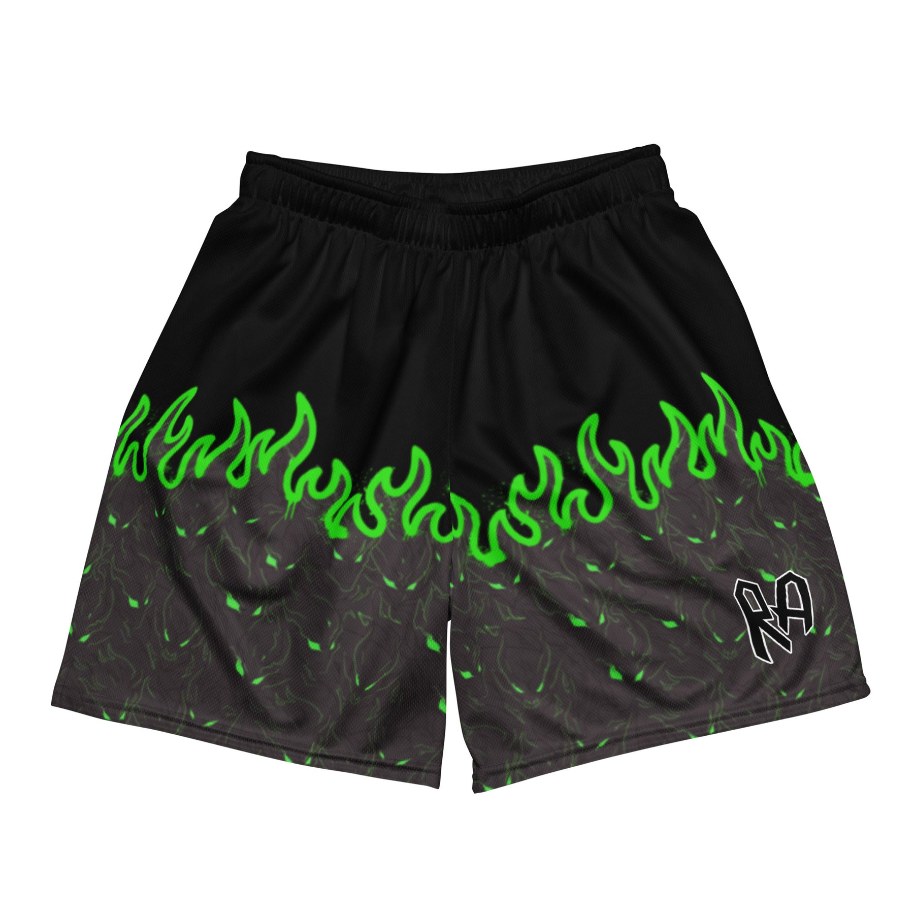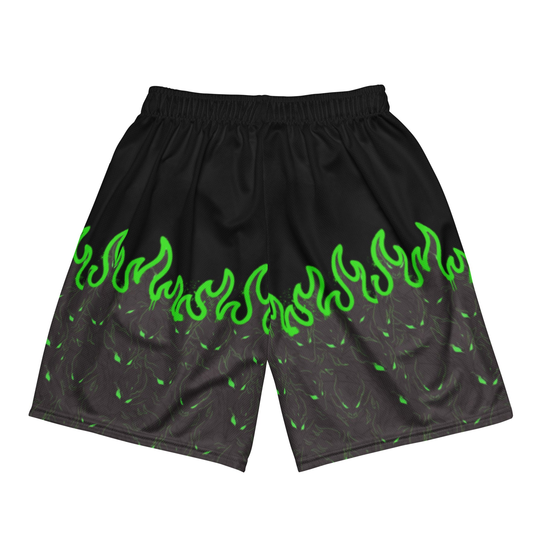 The rising demon-to-flame pattern marks transformation under pressure, while breathable recycled mesh keeps these shorts light, flexible, and comfortable through training, errands, or outdoor movement. Moisture-wicking fabric and a relaxed fit make them an easy daily staple without sacrificing edge.