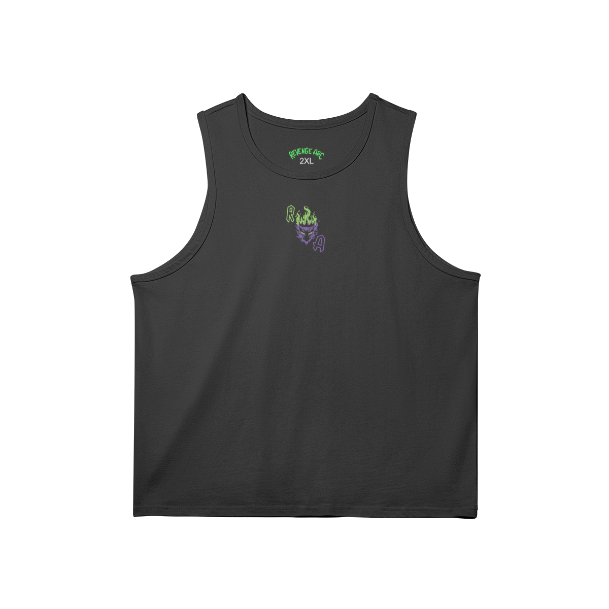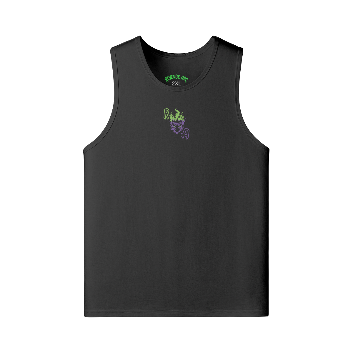 Cut wide, worn loose, and marked with the Revenge Arc sigil. An oversized muscle tank built for heat, layering, and statement presence. Soft to the touch but heavy in stance—this is street armor stripped to its core.